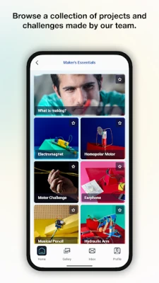 The app introduces the world of making through a set of unique inventions, gradually escalating from a basic homemade electromagnet to a complex laser Spirograph.