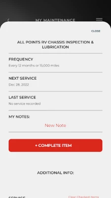 One of the most important new features is My Maintenance. This feature provides owners a clear and convenient way to track annual chassis maintenance for their RV. My Maintenance will also have a notification function to alert owners when annual maintenance is coming up.