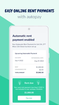 ★ Pay rent ★ Easily and securely pay your rent online using our secure platform. Get a complete overview of your rent payment history and upcoming payments. Plus, you can use the auto-pay feature to automatically pay your rent each month so you never miss a payment again. No more late fees, no more stress.